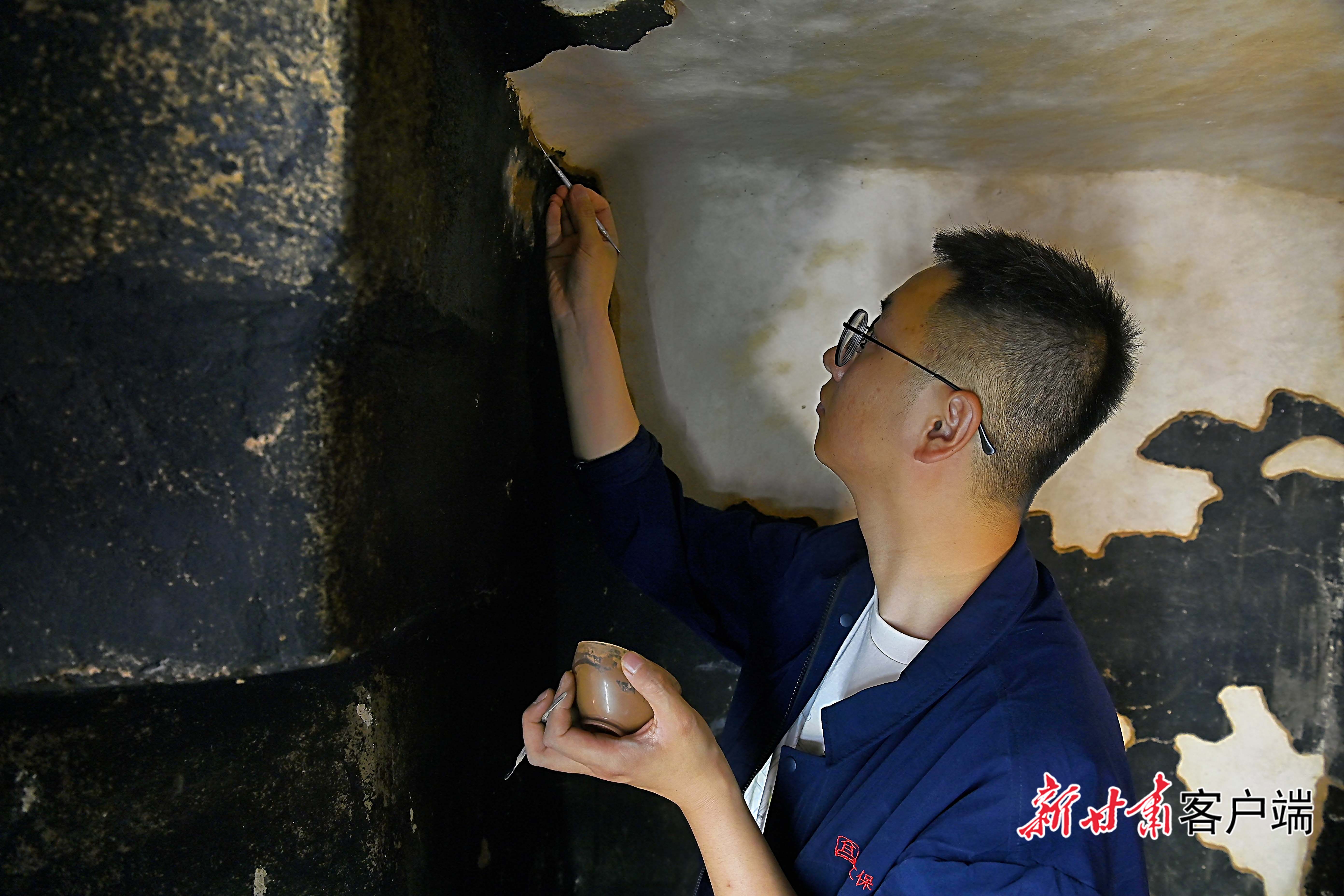 与窟外喧嚣不同,在第30窟内,身着工装的文物修复师紧握刀柄、轻刮泥土,让壁画和塑像重现昔日光彩。他们用巧手和匠心,静静地触摸着“光阴的故事”。